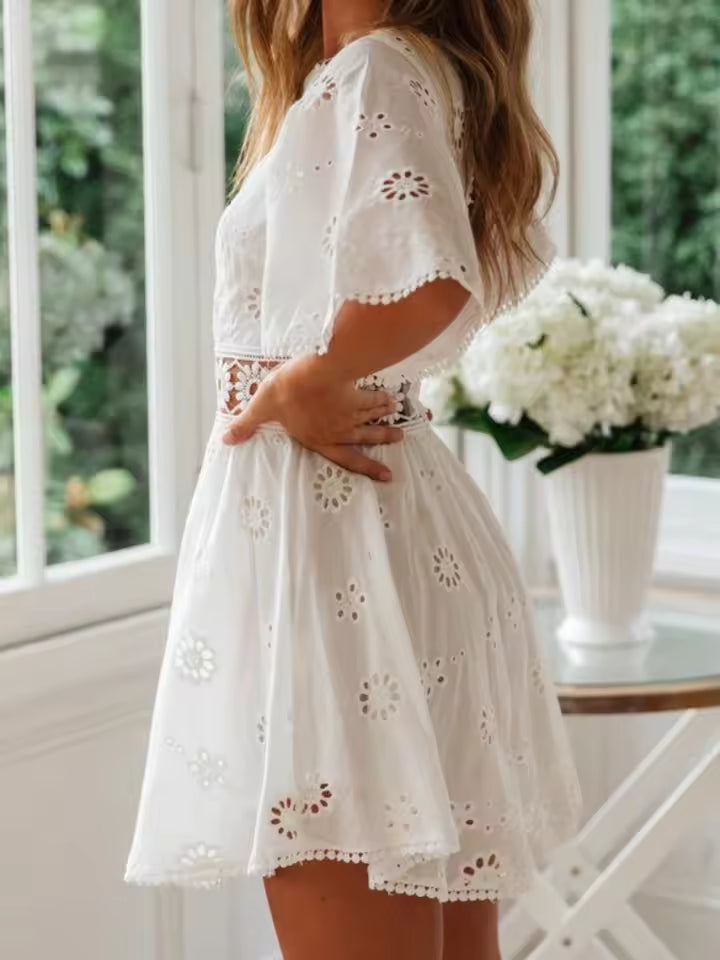 Parfaite pour les vacances, les soirées, les fêtes ou les sorties entre amis, cette robe blanche se porte facilement avec des sandales ou des accessoires élégants pour un style lumineux.